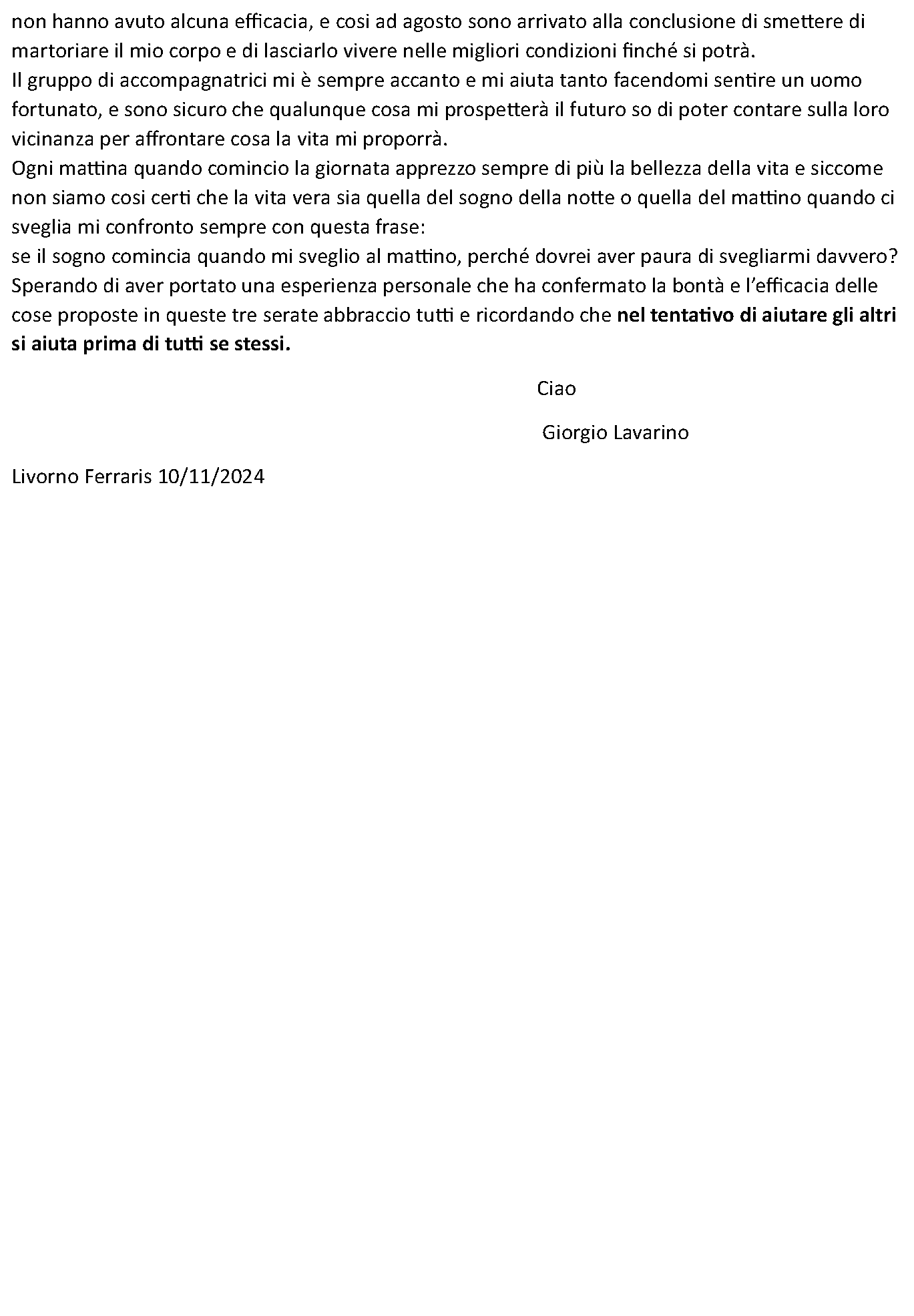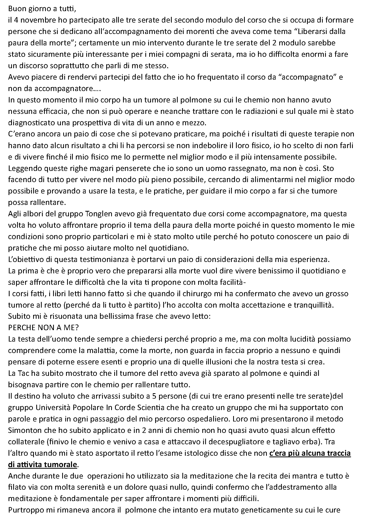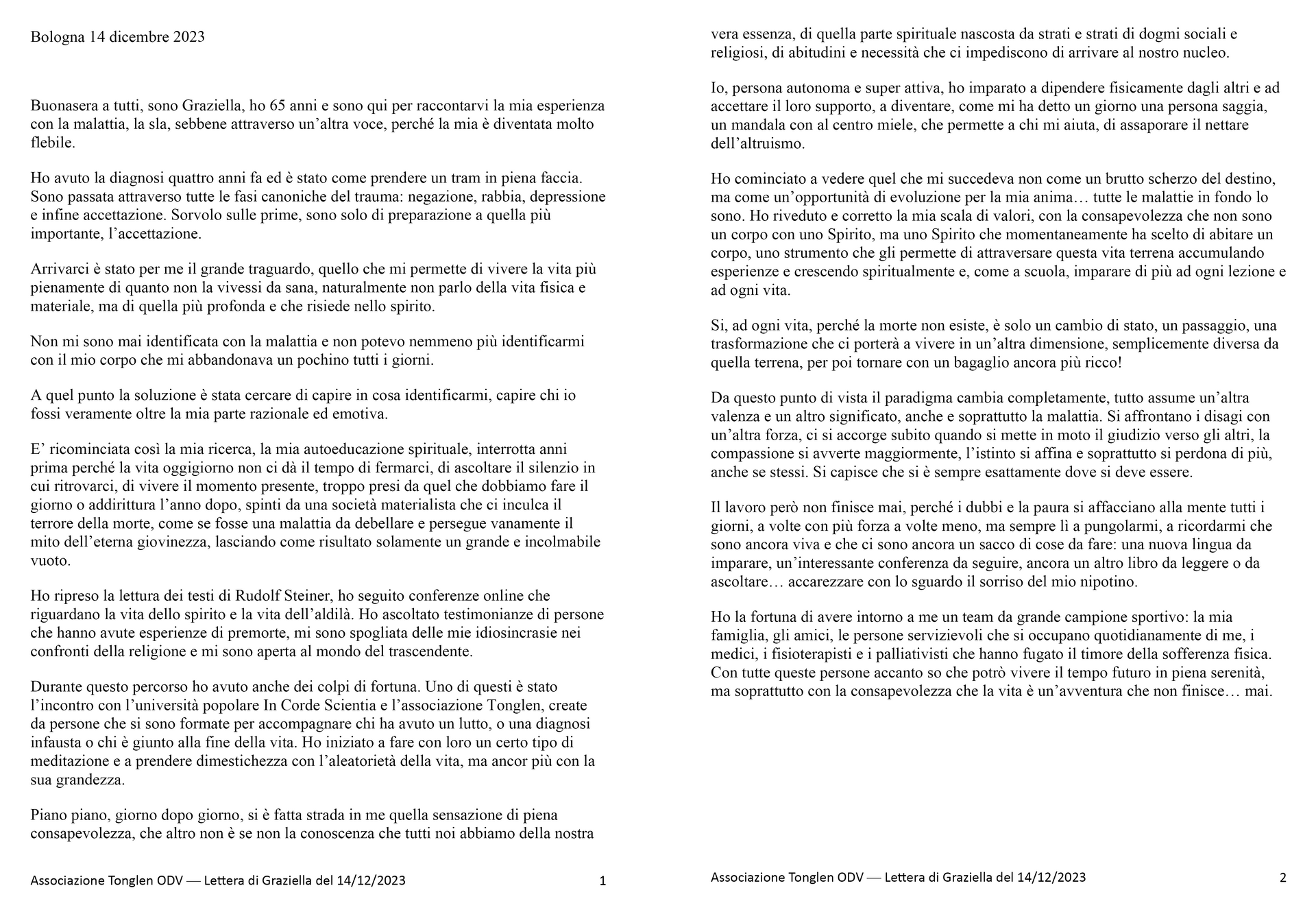 In questa pagina raccoglieremo le testimonianze e i contributi che ci verranno spontaneamente inviati dai nostri accompagnati insieme all'autorizzazione alla condivisione.
